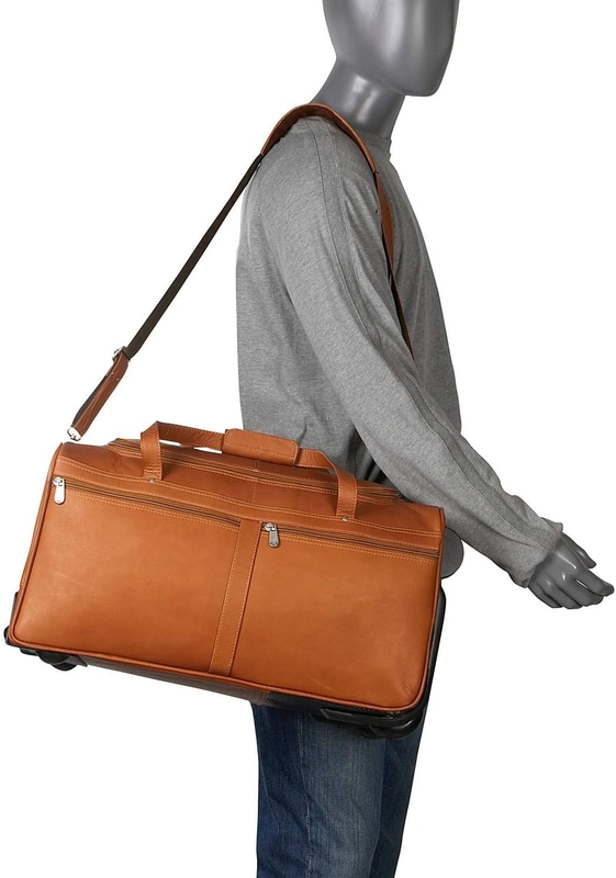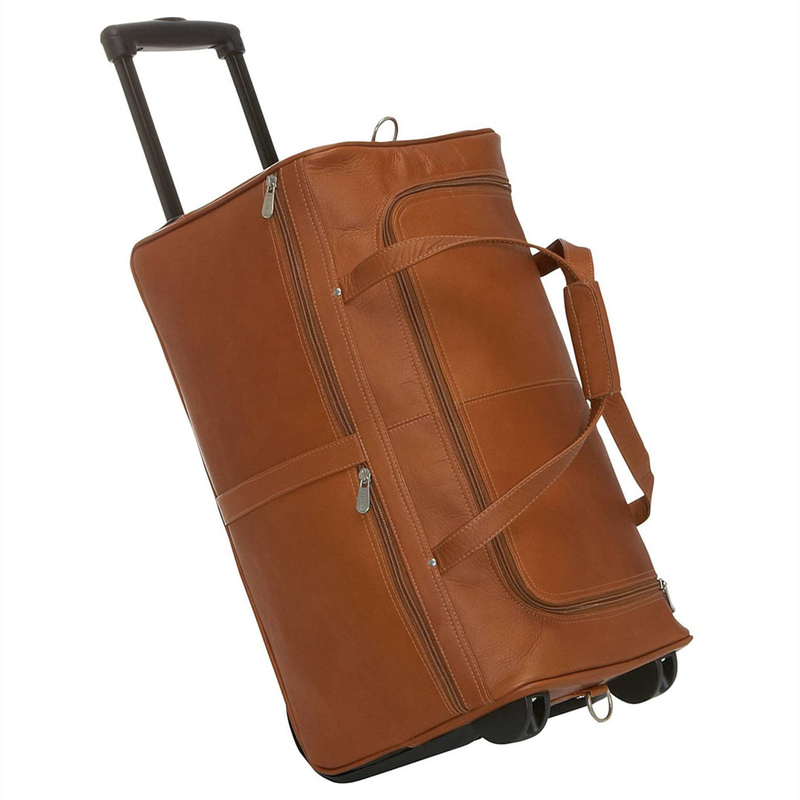 Αληθινή δερμάτινη τσάντα ταξιδιού με τροχούς με λαβή τηλεσκοπικού καροτσιού