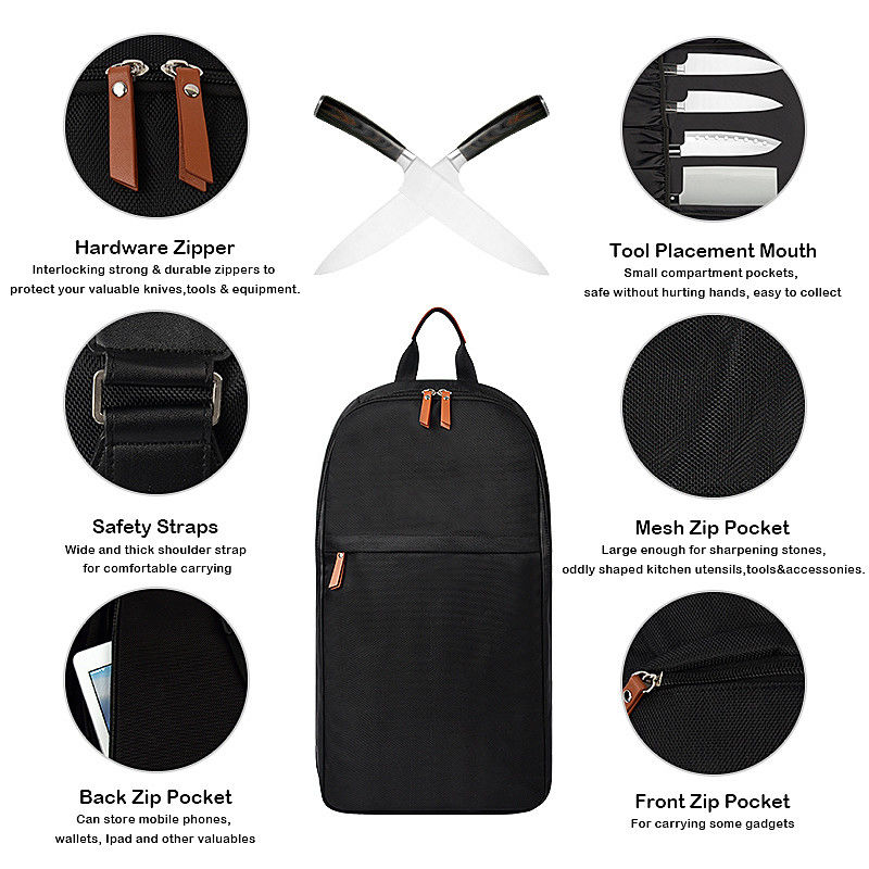 - Κλείδωμα, Ασφάλεια και Ασφάλεια Η τσάντα μαχαιριού του σεφ διαθέτει ένα ισχυρό φερμουάρ με 3-ψήφιο προσαρμόσιμο λουκέτο για να εξασφαλίσει ότι τα μαχαίρια σας θα παραμείνουν ασφαλώς μέσα!Και είσαι ασφαλής στο δρόμο σου.!