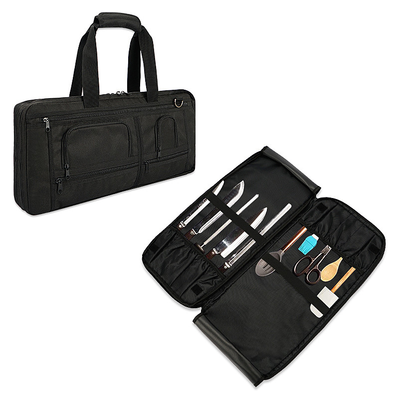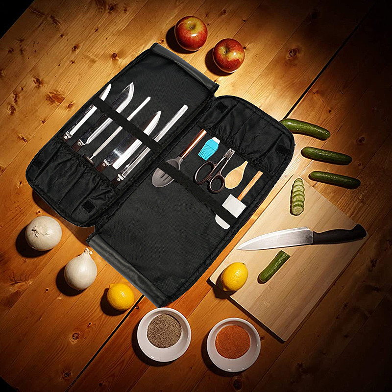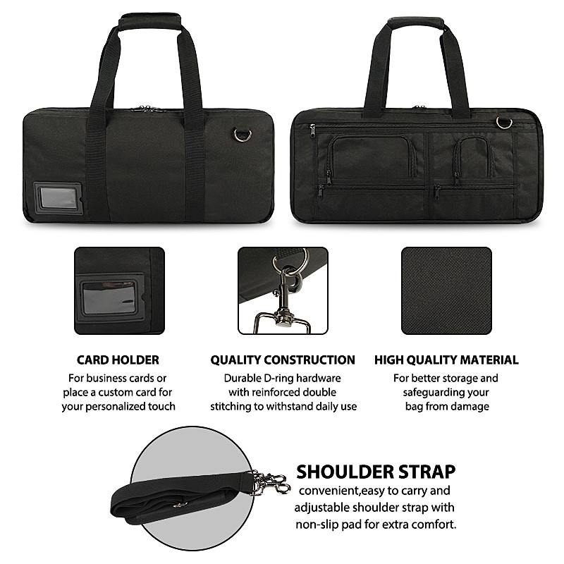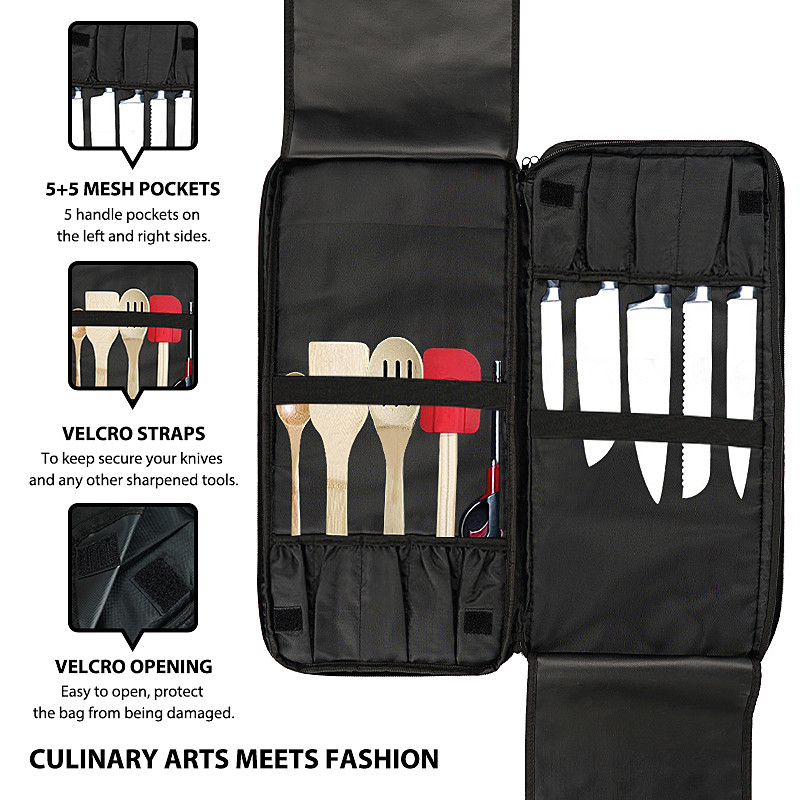 - HOLDS WIDE ASSORTMENT OF KNIVES AND TOOLS– Our large knife bag has 19 slots for knives ranging from paring knives up to 19” knives PLUS a customized space for your sharpening steel and many zippered compartments for your tools, tablet, τηλέφωνο, συνταγές κλπ.